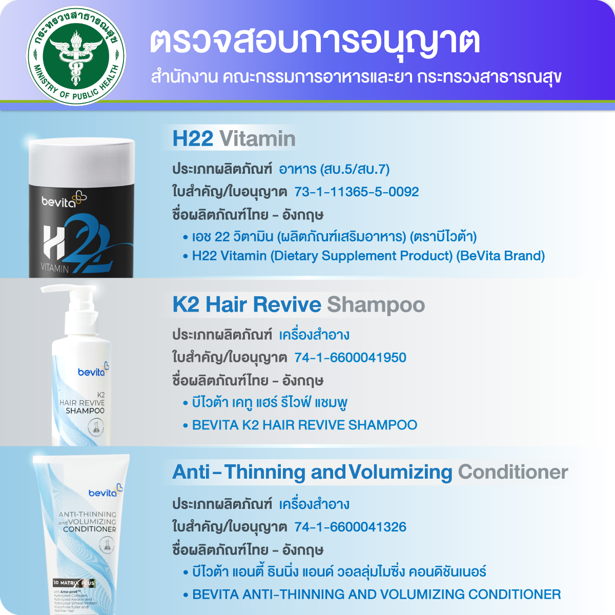 Bevita วิตามินบำรุงผม ผสาน 22 ส่วนประกอบคัดสรรสารสกัดจากธรรมชาติที่จำเป็นต่อผม รวบรวมวิตามินและแร่ธาตุ ไว้ในเม็ดเดียว ครบ จบทุกปัญหาผม