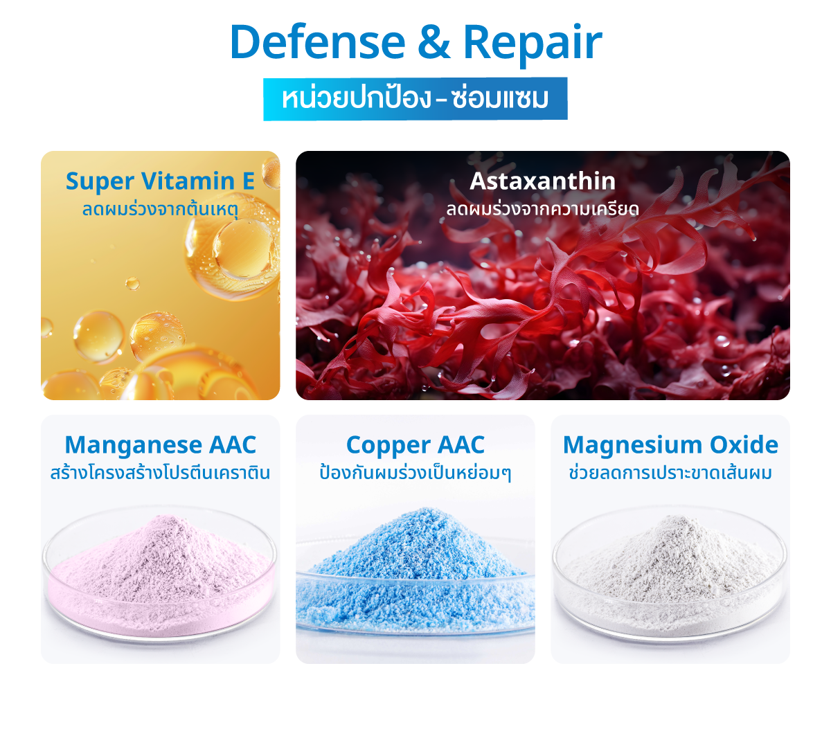 เซทบำรุงเส้นผมสุดล้ำลึกจากภายในสู่ภายนอก เน้นส่วนประกอบคัดสรรสารสกัดจากธรรมชาติที่จำเป็นต่อเส้นผม คิดค้นและพัฒนาสูตรโดยแพทย์ผู้เชี่ยวชาญด้านเส้นผมระดับโลก ผ่าน Dermatologically Tested การทดสอบไม่ก่อให้เกิดการแพ้และระคายเคือง