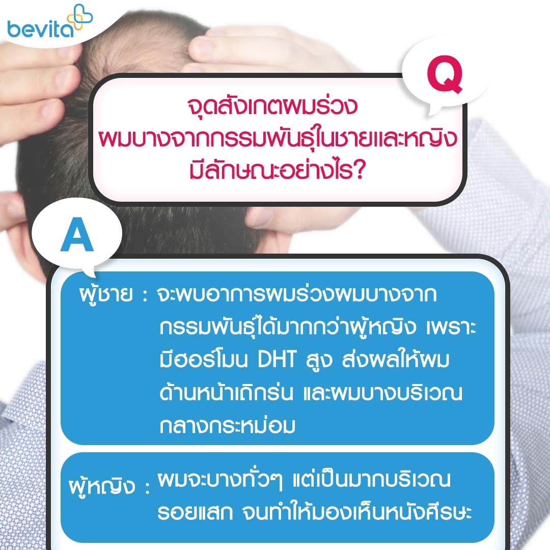 ไม่ว่าจะเป็นผู้ชายหรือผู้หญิง ซึ่งหลายคนต่างมีคำถามคาใจที่ว่า ผมร่วง ผมบางจากกรรมพันธุ์นั้น เกิดขึ้นได้อย่างไร ต่อไปหัวจะล้านจนไม่มีผมเลยหรือไม่ เเละเราสามารถดูเเลให้ผมกลับมาเเข็งเเรง มีชีวิตยืนยาวออกไปได้อย่างไร