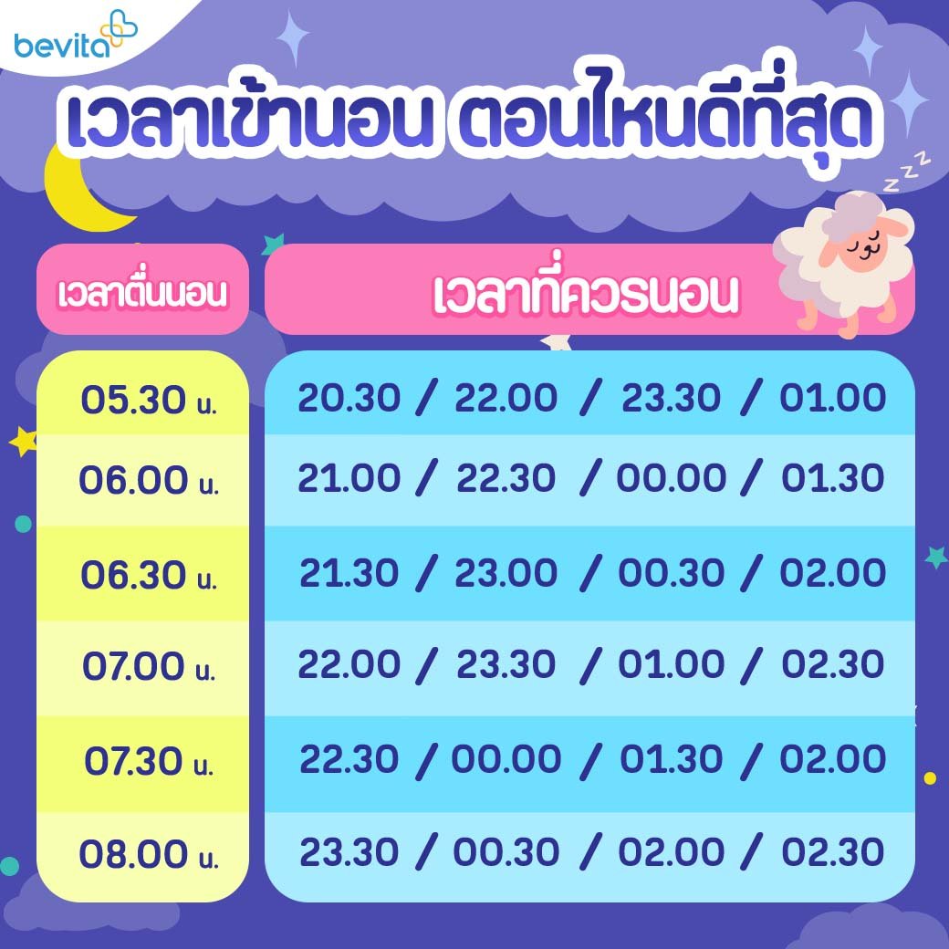 ตารางเวลาที่ควรเข้านอนเราควรเข้านอนกี่โมง และ ตื่นตอนกี่โมงเพื่อหมดปัญหานอนน้อย นอนดึก